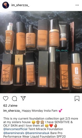 Du coup je vais sur leur page, je regarde leurs autres photos et si jamais ils utilisent une marque de fond de teint que j’aimerais tester je regarde ou demande la référence de la teinte qu’ils ont prise.