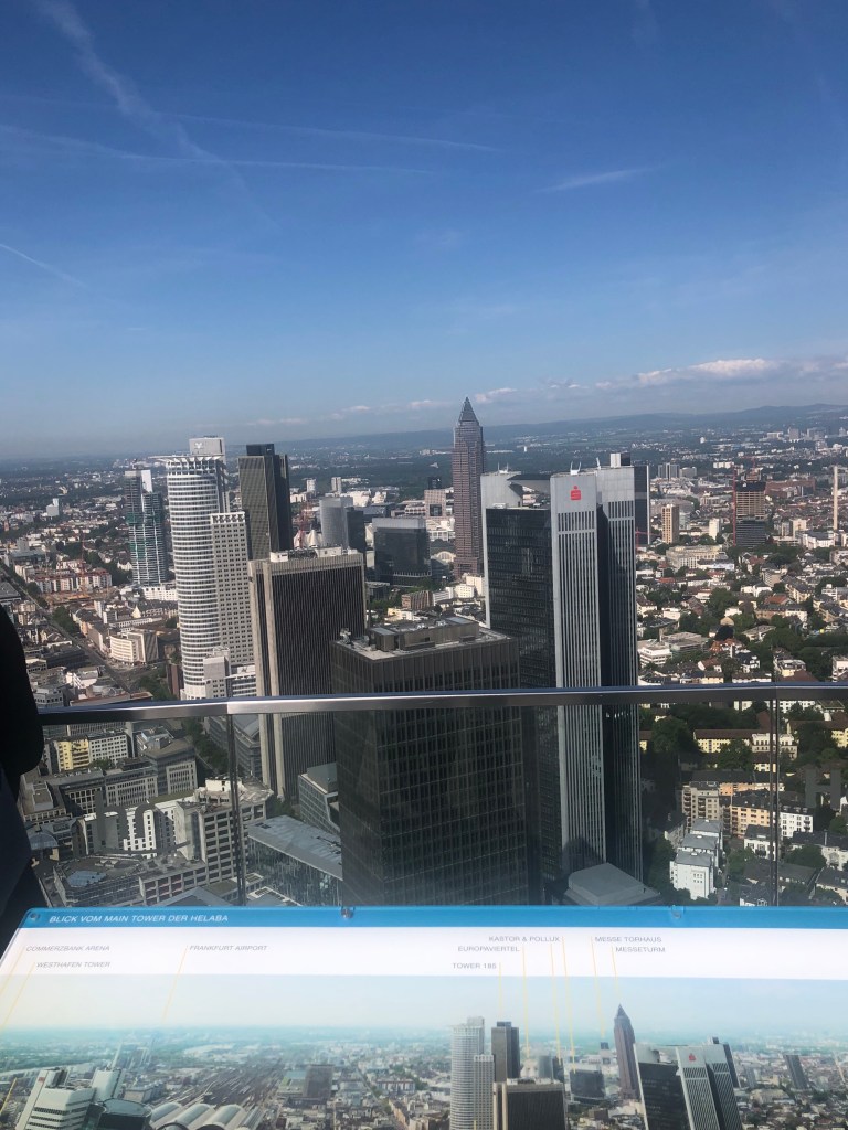 La Main Tower est un tour de 190m de haut sur 54 étages qu’il est possible de monter en ascenseur. L’ascenseur monte à 18km/h, en haut nous avons une magnifique vue 360 sur tout Frankfurt. Il est conseillé de venir faire cette visite tôt pour éviter la queue.