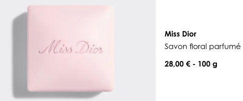 Dans la gamme parfum, les savons sont les produits les moins chers. De nombreux parfum Dior on leur version en parfum.