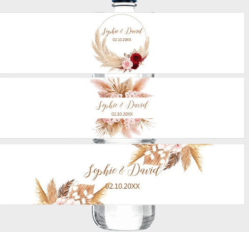En ce qui me concerne j’avais du rouge et du blanc à mon mariage. J’ai donc opté pour 2 étiquettes identiques avec des tonnalités de couleurs différents.